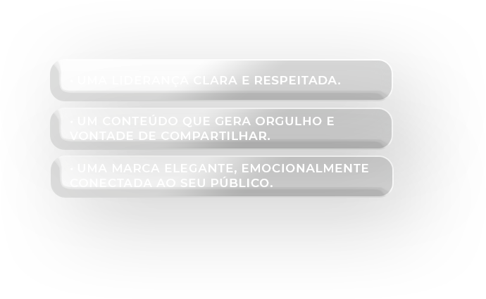 relevância e autoridade. Transformamos a percepção do mercado sobre sua marca ao fortalecer o seu posicionamento. Nosso trabalho é revelar para o público o verdadeiro valor do seu negócio.